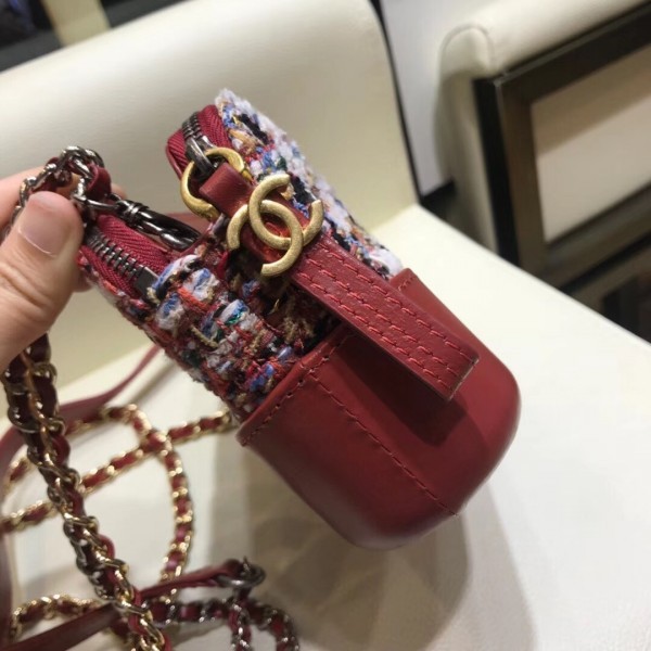Best Chanel Gabrielle Clutch With Chain Bag A94505 Tweed/Calfskin Red 2018 AQ03599