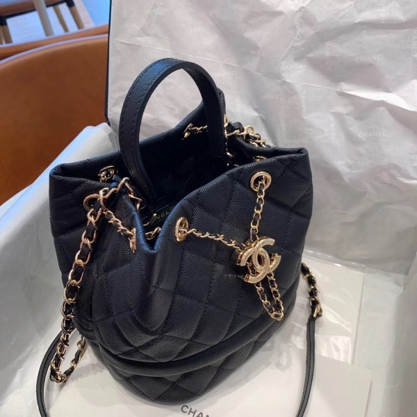 Best Chanel Quilted Grained Calfskin Small Drawing Bucket Bag AS0894 Black 2019 Collection AQ03862