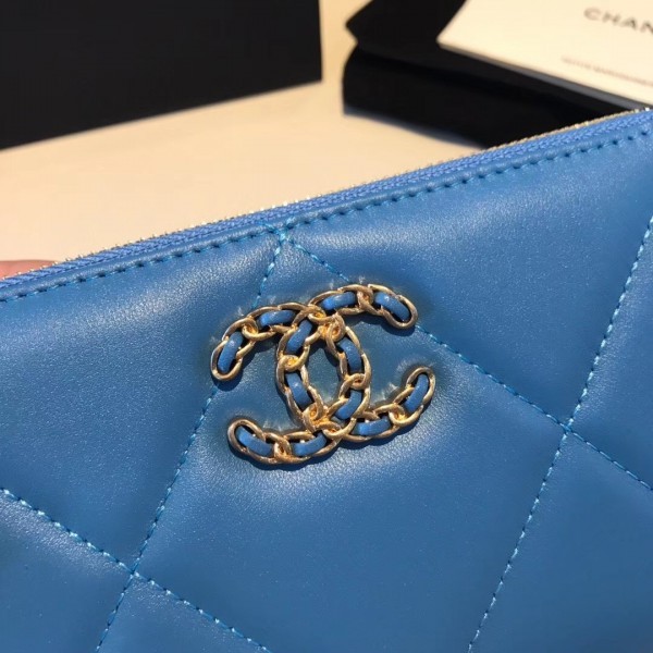 Chanel 19 Goatskin Long Zipped Wallet AP1063 Blue 2019 Collection AQ02875