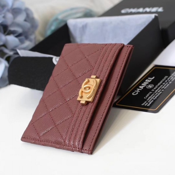 Chanel Caviar Leather Boy Card Holder A84431 Burgundy AQ00732
