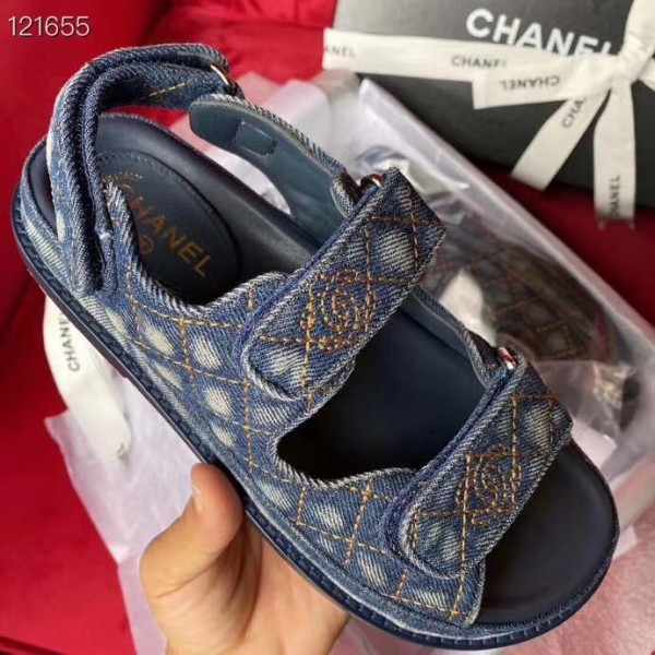 Chanel CC Logo Magic Loop Beach Sandals denim blue 2020 AQ04119