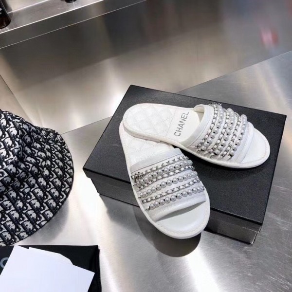 Chanel Chain and Pearl Mules Slipper Sandals White 2020 AQ04083