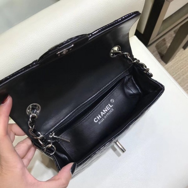 Chanel Classic Flap Small Bag A01116 Black in Patent Leather with Silver Hardware AQ02590