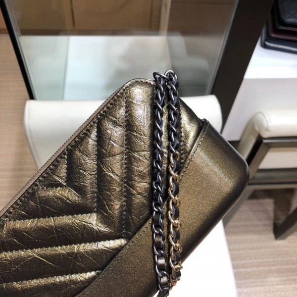 Chanel Glittered Aged Calfskin Gabrielle Clutch With Chain Bag A94505 Chevron Gold 2019 AQ01286