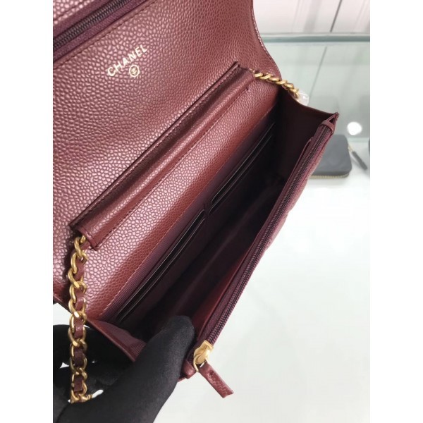 Chanel Grained Leather Boy Wallet On Chain WOC Bag A80287 Burgundy/Gold AQ02593