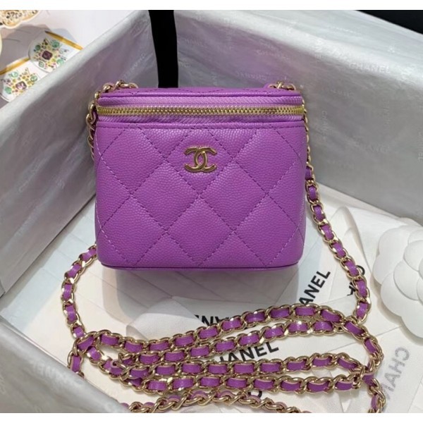 Chanel Grainy Leather Mini Vanity with Classic Chain AP1340 Purple 2020