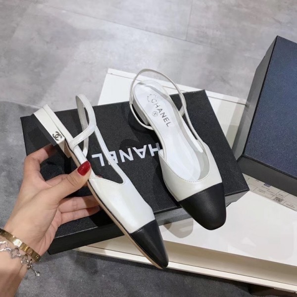 Chanel Heel 2cm Flat Slingbacks G31319 White/Black AQ01209
