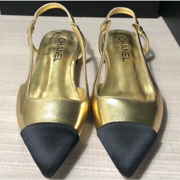 Chanel Lambskin and Satin Slingbacks G35261 Metallic Gold/Black 2020 AQ02563