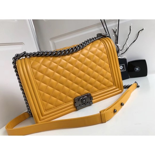 Chanel Lambskin Boy Flap New Medium Bag Yellow AQ01969