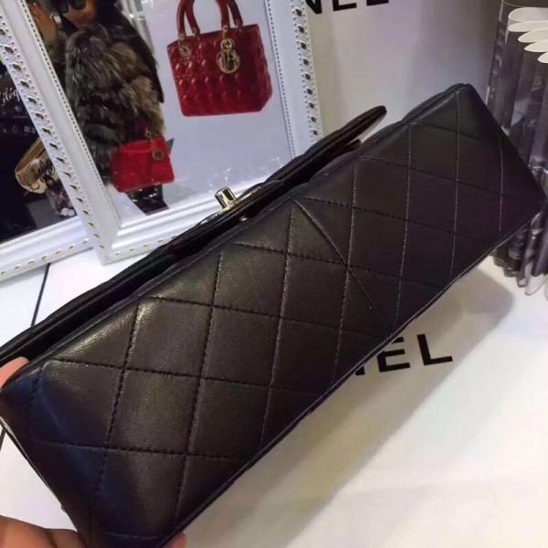 Chanel Lambskin Classic Flap 28cm Bag Black With Silver Hardware 2018 AQ01139