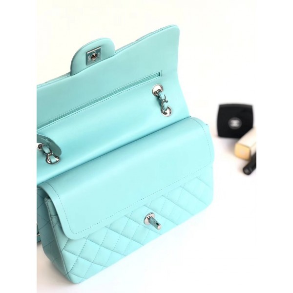 Chanel Lambskin Medium Classic Flap Bag A01112 Light Blue With Silver Hardware AQ01705