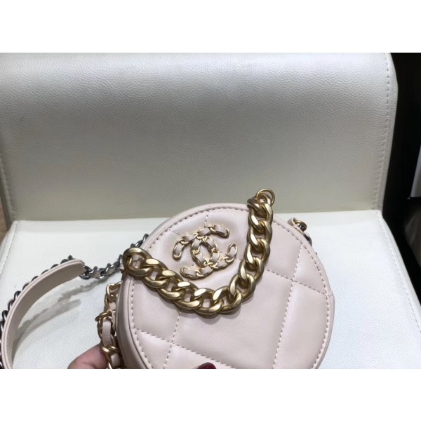 Chanel Maxi-Quilted Lambskin Round Clutch with Chain Apricot 2019 Collection AQ01894