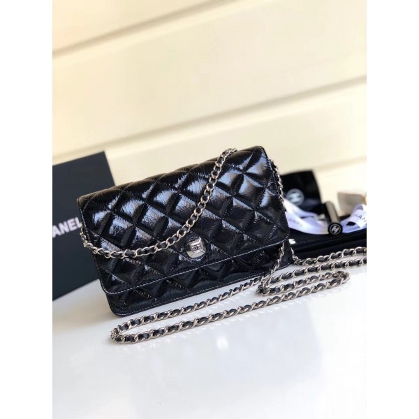 Chanel Metallic Aged Lambskin Wallet On Chain WOC Bag A84510 Black 2018 AQ03812