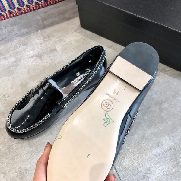 Chanel Patent Leather Chain Flat Loafers G35631 Black 2020 Collection AQ02970