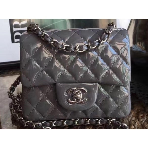 Chanel Patent Leather Mini Classic Flap Bag A1115 Gray AQ04195