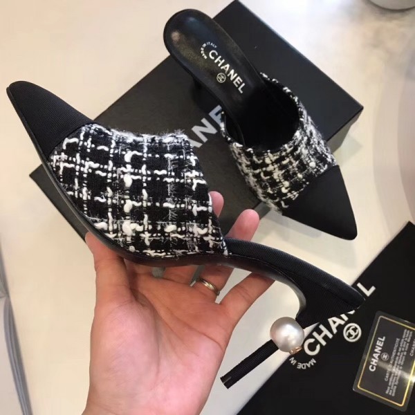 Chanel Pearl Heel 8.5cm Mules G32100 Tweed Black 2019 AQ01298
