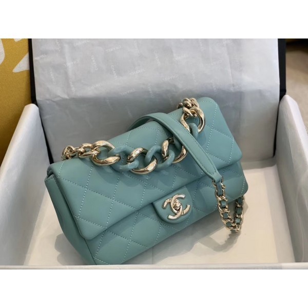• The product Chanel Quilted Lambskin Medium Flap Bag with Resin Chain AS1353 Light Blue 2019 Collection AQ03858 has been added to comparison list.