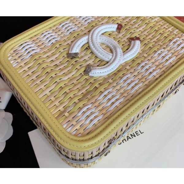 Chanel Rattan/Patent Calfskin CC Filigree Vanity Case Medium Bag A93343 Yellow 2019 AQ01948