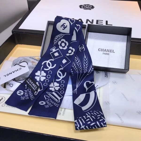 • Chanel Silk Twill Slim Bandeau Scarf 10x120cm AA0349 2019