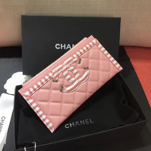 Chanel Striped Grained Calfskin CC Filigree Small Pouch Bag A81942 Pink 2019 AQ04082