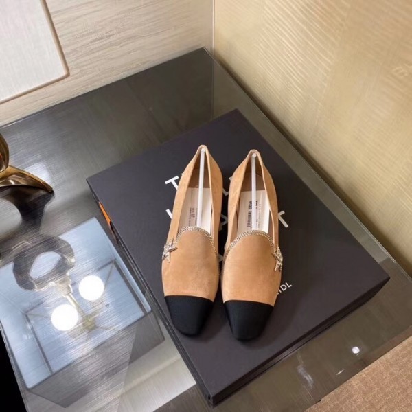 Chanel Top Quality Crystal Star Suede Calfskin and Grosgrain Loafers G35833 Beige/Black 2020 AQ03557