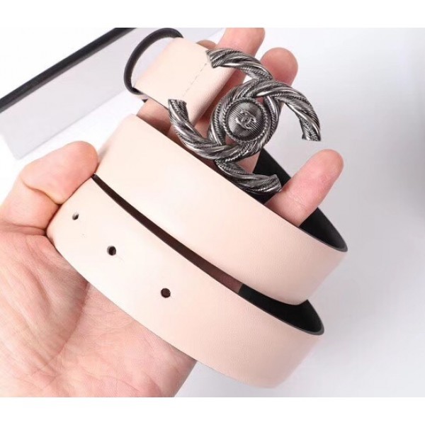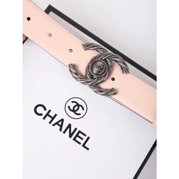 Chanel Width 3cm Braided CC Logo Buckle Leather Belt Nude Pink Belt AQ00744