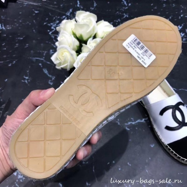Copy Top Chanel CC Logo Lambskin and Suede Calfskin Espadrilles White/Black 2019 AQ00698