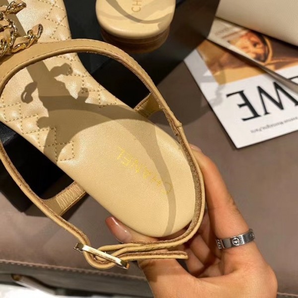 Designer Chanel Chain CC Logo Thong Sandals aprcot 2020 AQ00602