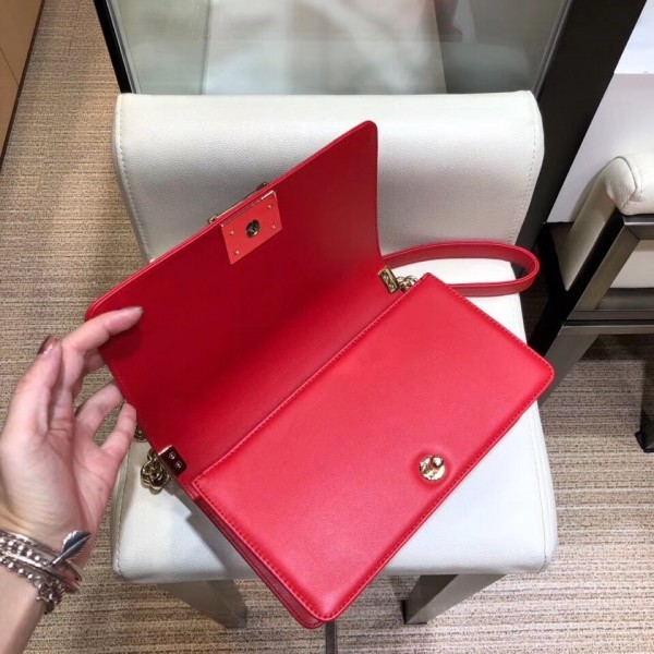Designer Imitation Chanel Embroidered Boy Medium Flap Bag Red 2019 AQ01630