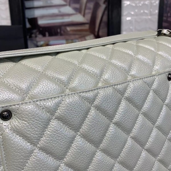 Fake Chanel Quilted Calfskin Maxi Classic Flap Boarding Bag A91169 White 2020 Collection AQ02146