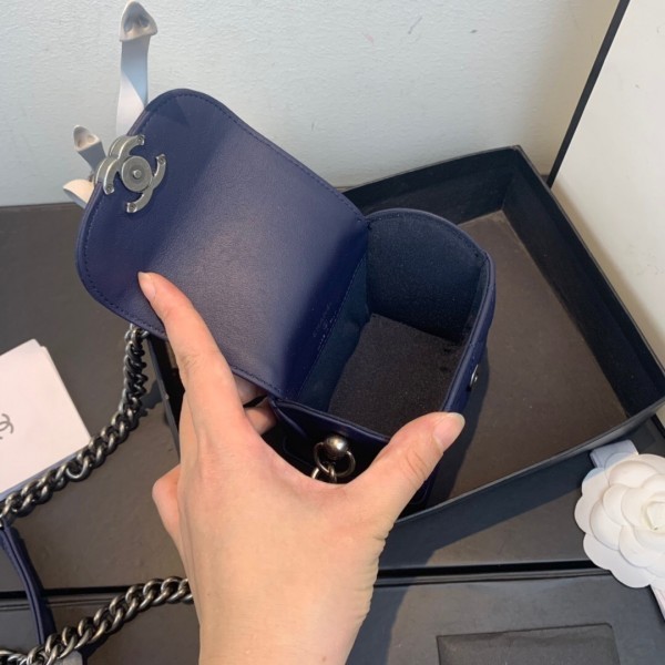 Fake Chanel Quilted Leather Box Clutch with Chain Navy Blue 2019 Collection AQ02787