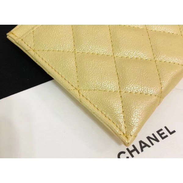 Hot Chanel Iridescent Pearl Caviar Pouch Clutch Bag Yellow 2019 AQ03944