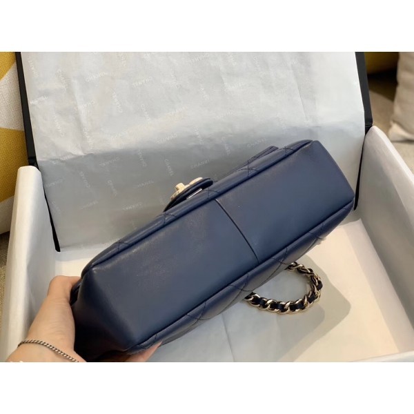 Hot Chanel Quilted Lambskin Large Flap Bag with Resin Chain AS1354 Navy Blue 2019 Collection AQ03764