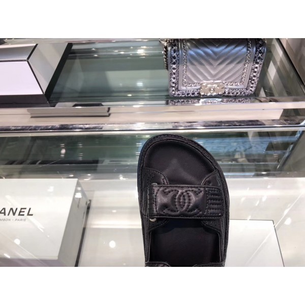 • Chanel CC Strap Flat Sandals G3445 Black 2020