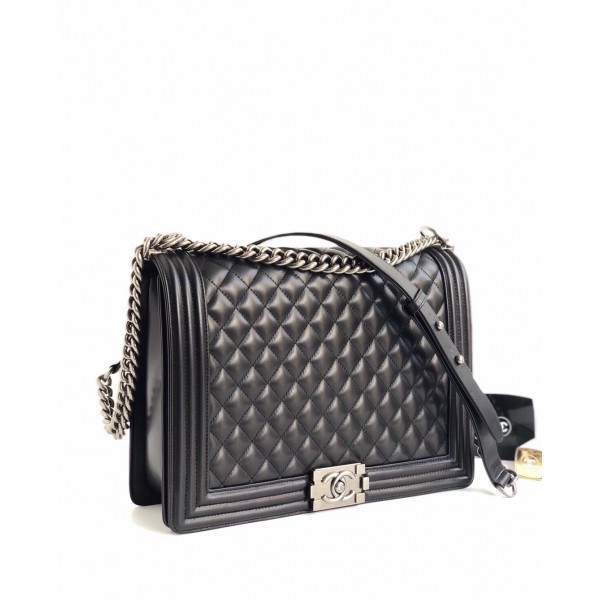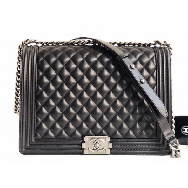 Imitation Chanel Lambskin Boy Flap Large Bag Black/Silver AQ01914