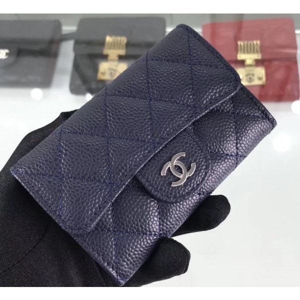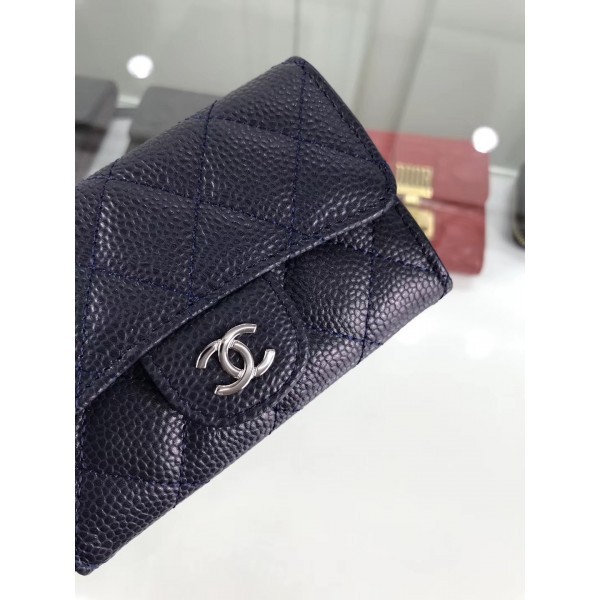 Imitation Hot Chanel Grained Leather Classic Flap Card Holder A80799 Navy Blue/Silver AQ02671