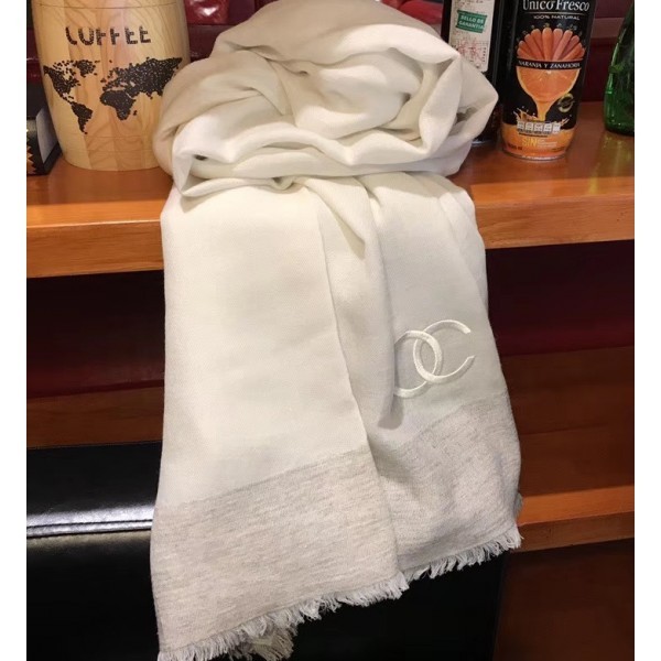 Knockoff AAA Chanel CC Logo Cashmere Scarf 90x200cm White 2019 AQ01600