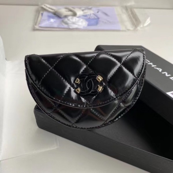 Knockoff Chanel Shiny Crumpled Lambskin Flap Coin Purse Wristlet Bag AP1346 Black 2020 AQ04122