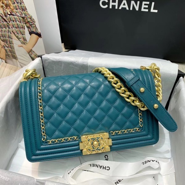 New Chanel Boy Flap Medium Bag with Chain Trim Turquoise Blue Cruise 2020 AQ00901