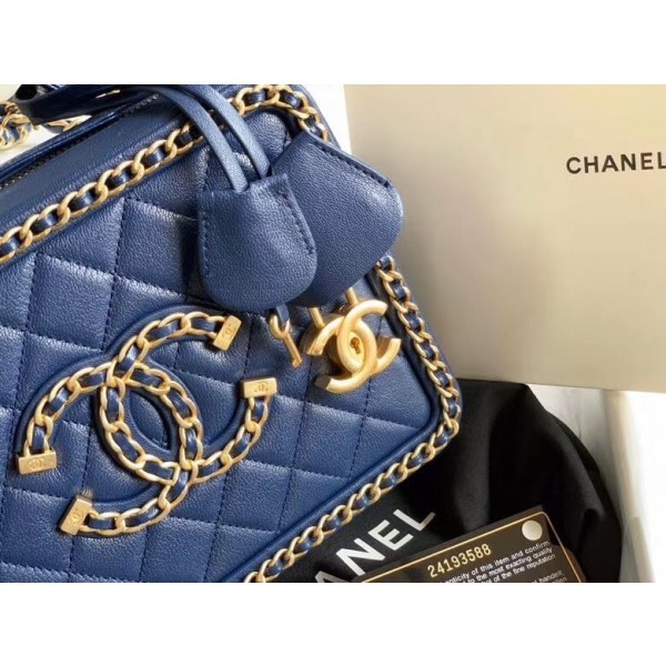 Replica Best Quality Chanel Chain CC Filigree Medium Vanity Case Bag A93343 Navy Blue 2020 AQ03008