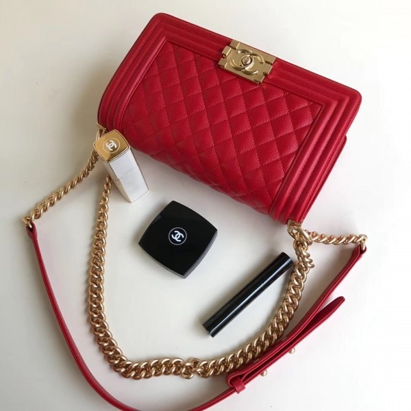 Replica Chanel Caviar Leather Boy Flap Medium Bag Red AQ03680