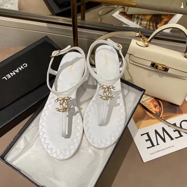 Replica Chanel Chain CC Logo Thong Sandals white 2020 AQ02084
