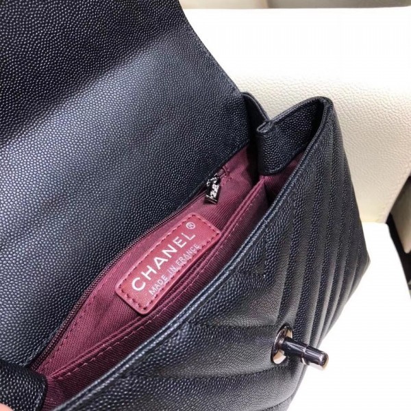 Replica Chanel Chevron Grained Calfskin Small Flap Bag with Top Handle A92990 Black 2018 AQ00763
