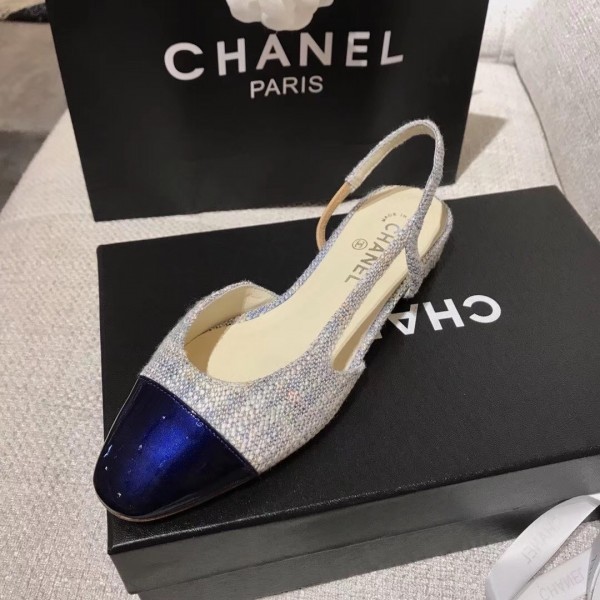 Replica Chanel Heel 2cm Flat Slingbacks G31319 Tweed/Patent Dark Blue AQ02314