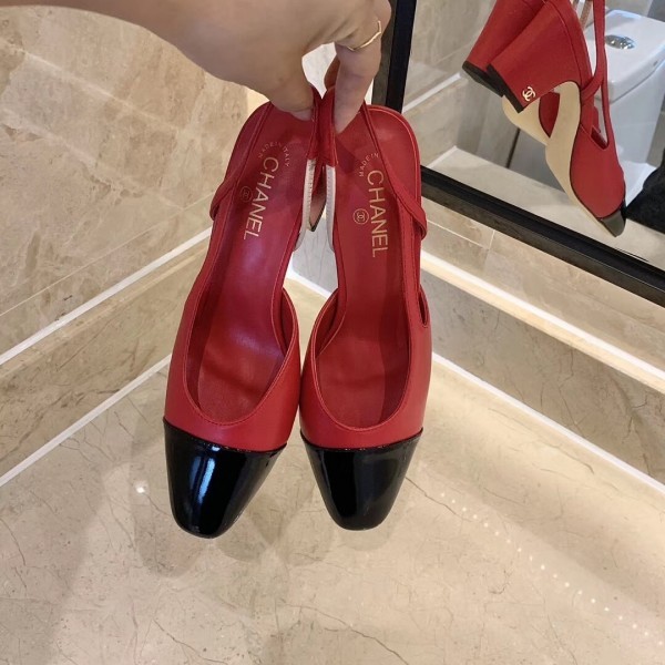 Replica Chanel Heel 6.5cm Slingbacks G31318 Red/Patent Black 2020 AQ02489