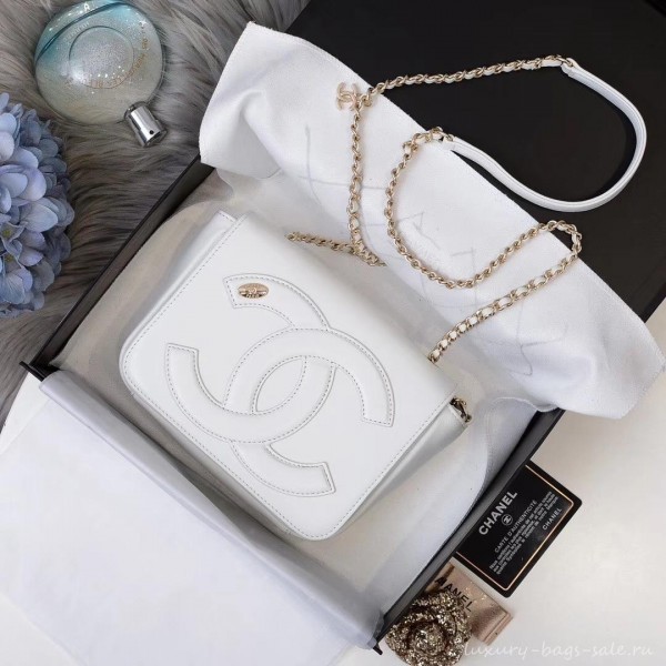 Replica Chanel Lambskin CC Logo Flap Bag AS0321 White 2019 AQ02287