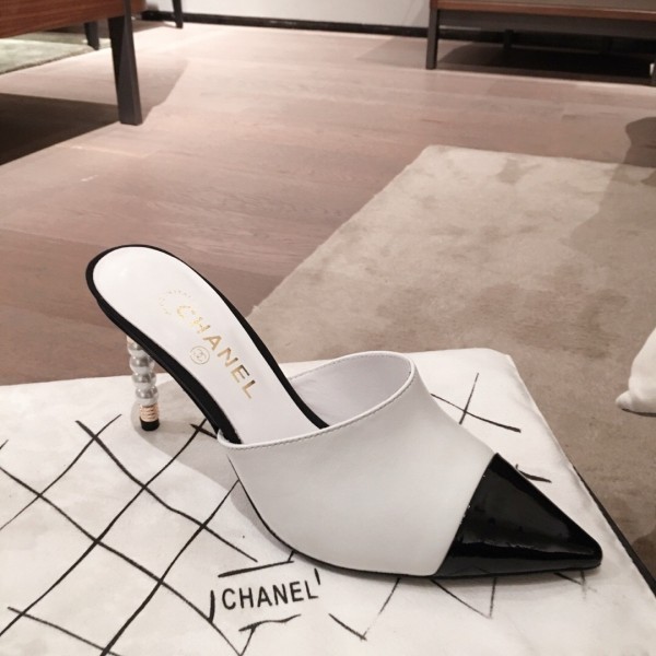 Replica Chanel Lambskin Pearl Heel Mules G35540 White 2020 Collection AQ00674