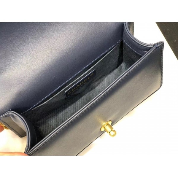 Replica Chanel Quilted Calfskin Chain Small Boy Flap Bag A67085 Navy Blue 2019 Collection AQ03657