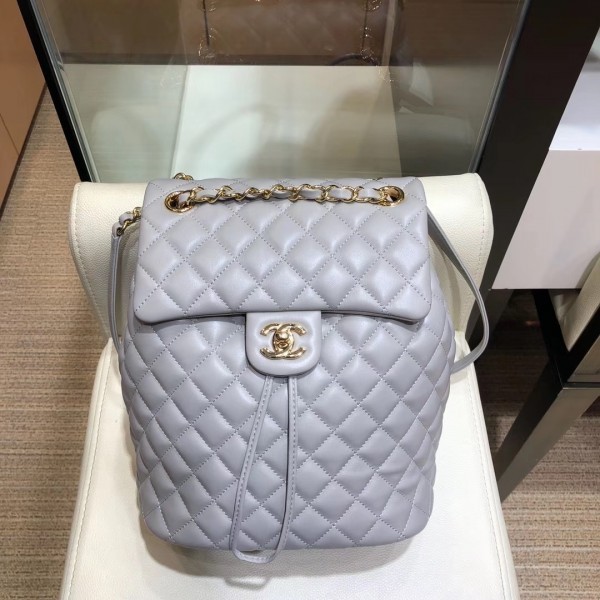 Replica Chanel Quilting sheepskin Backpack Bag A91121 gray with gold hardware AQ03639