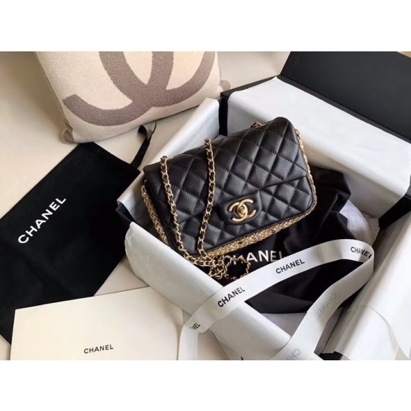 Replica Luxury Chanel Chain and Pearls Flap Mini Bag AS1740 Black 2020 AQ01163